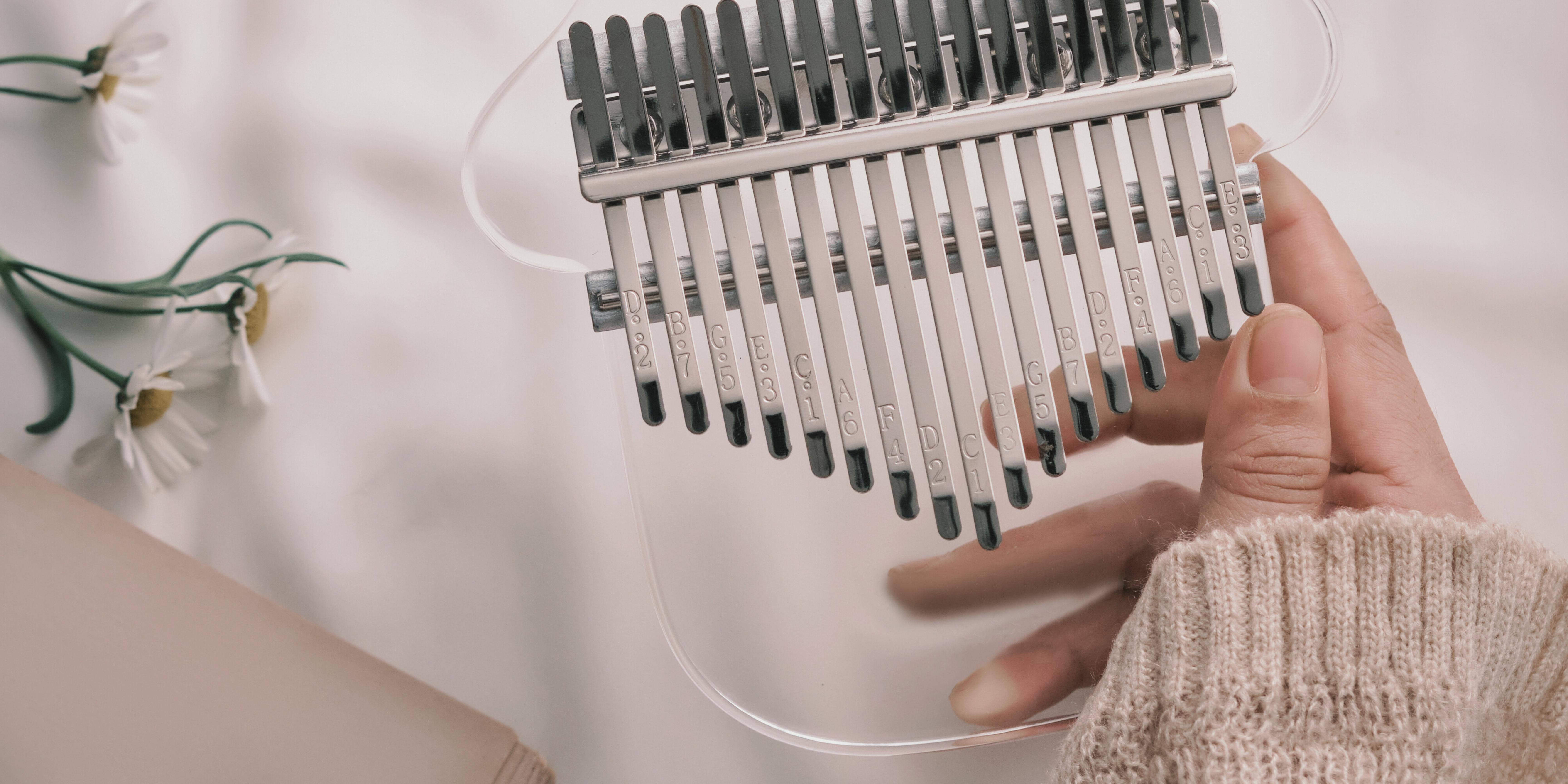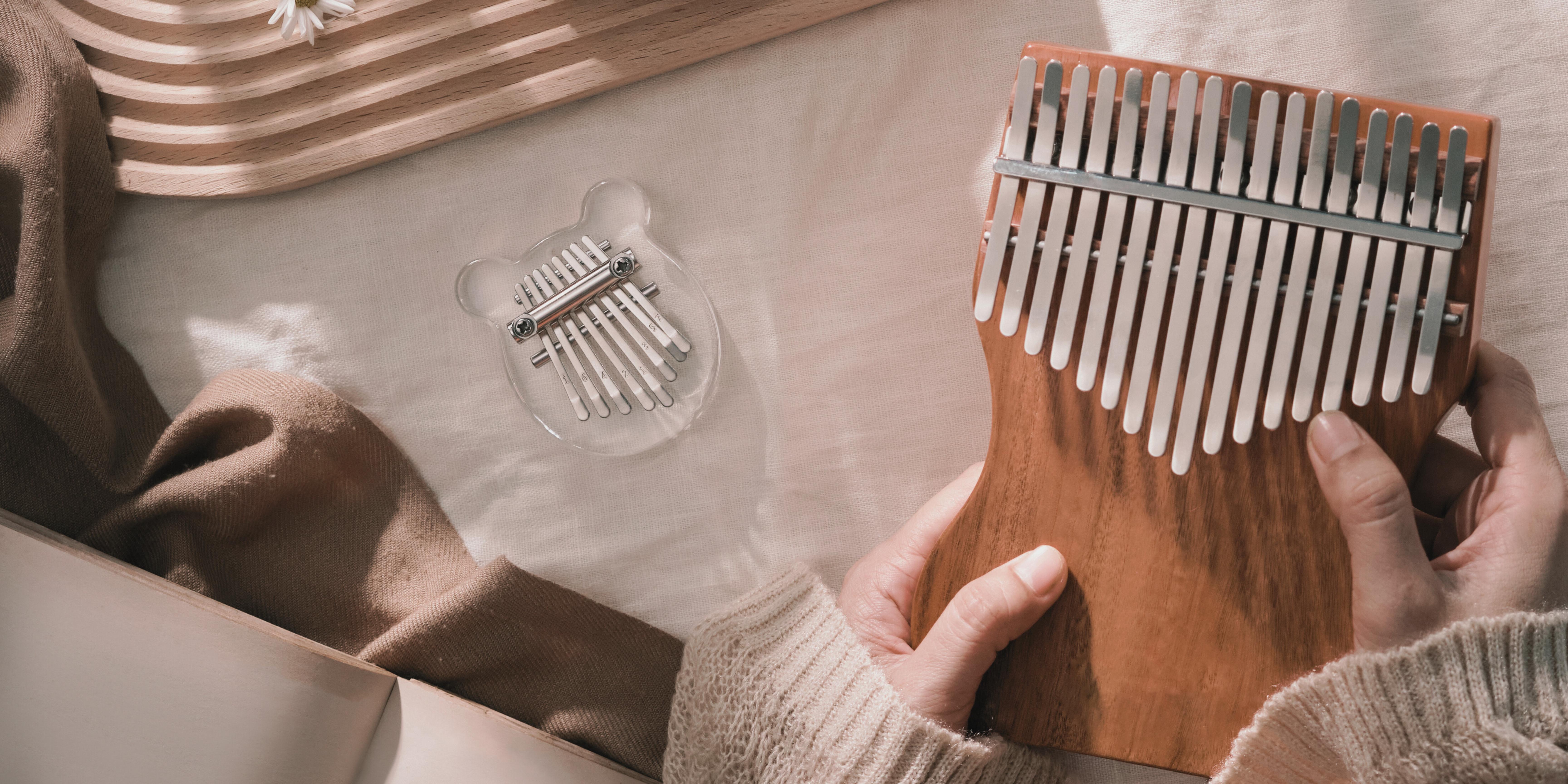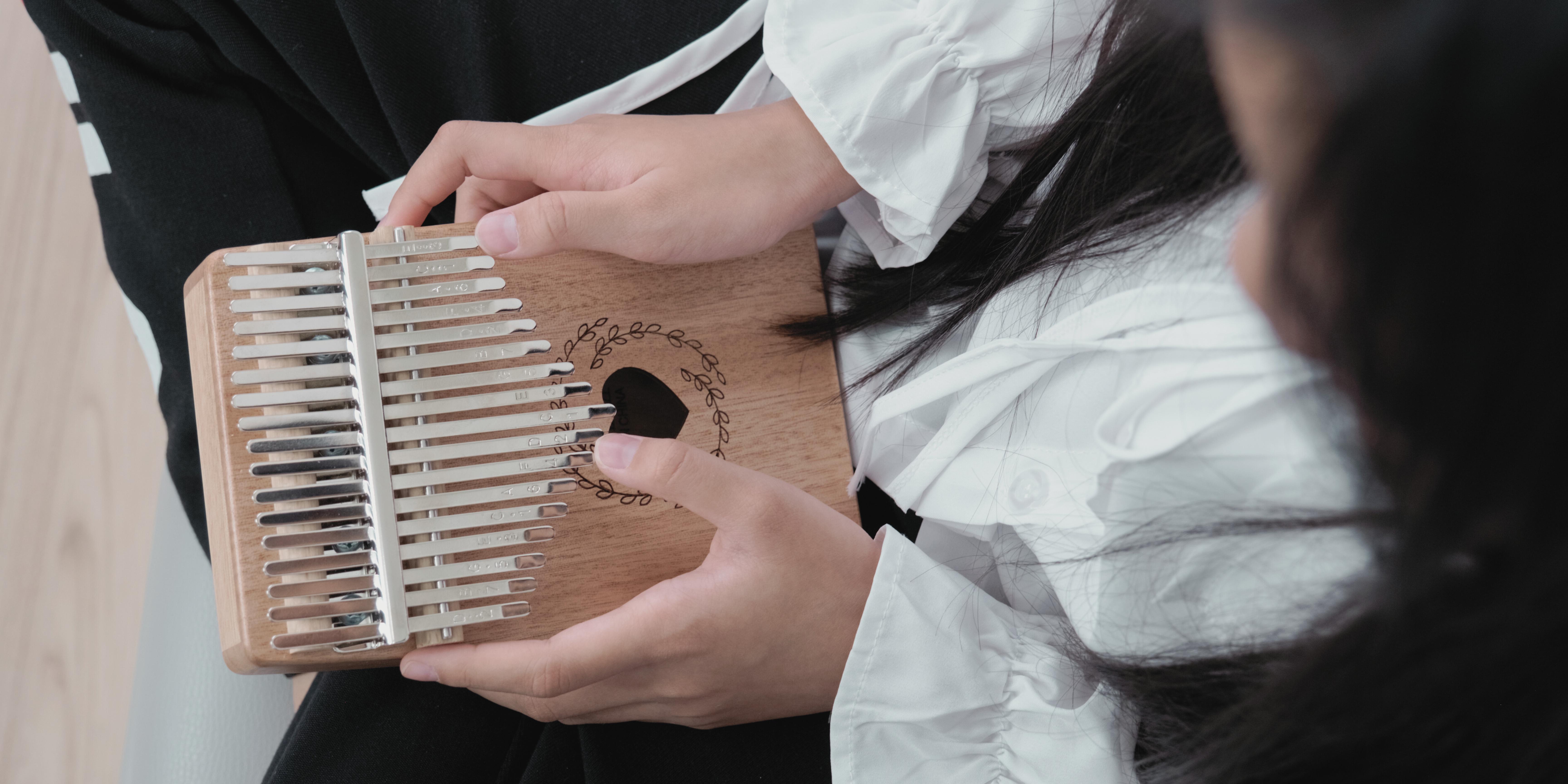 Aussi appelé “piano à pouce” ou “mbira”, cet instrument à percussion mélodique d’origine africaine appartient à la famille des lamellophones (c’est-à-dire que les sons sont produits par le pliage ou le frappement de lames métalliques). Il est accessible à tous car ses lames sont pré-accordées pour produire une gamme harmonique : garanti sans fausses notes ! Les débutants peuvent rapidement jouer des mélodies simples en utilisant leurs pouces sur les lames du Kalimba.